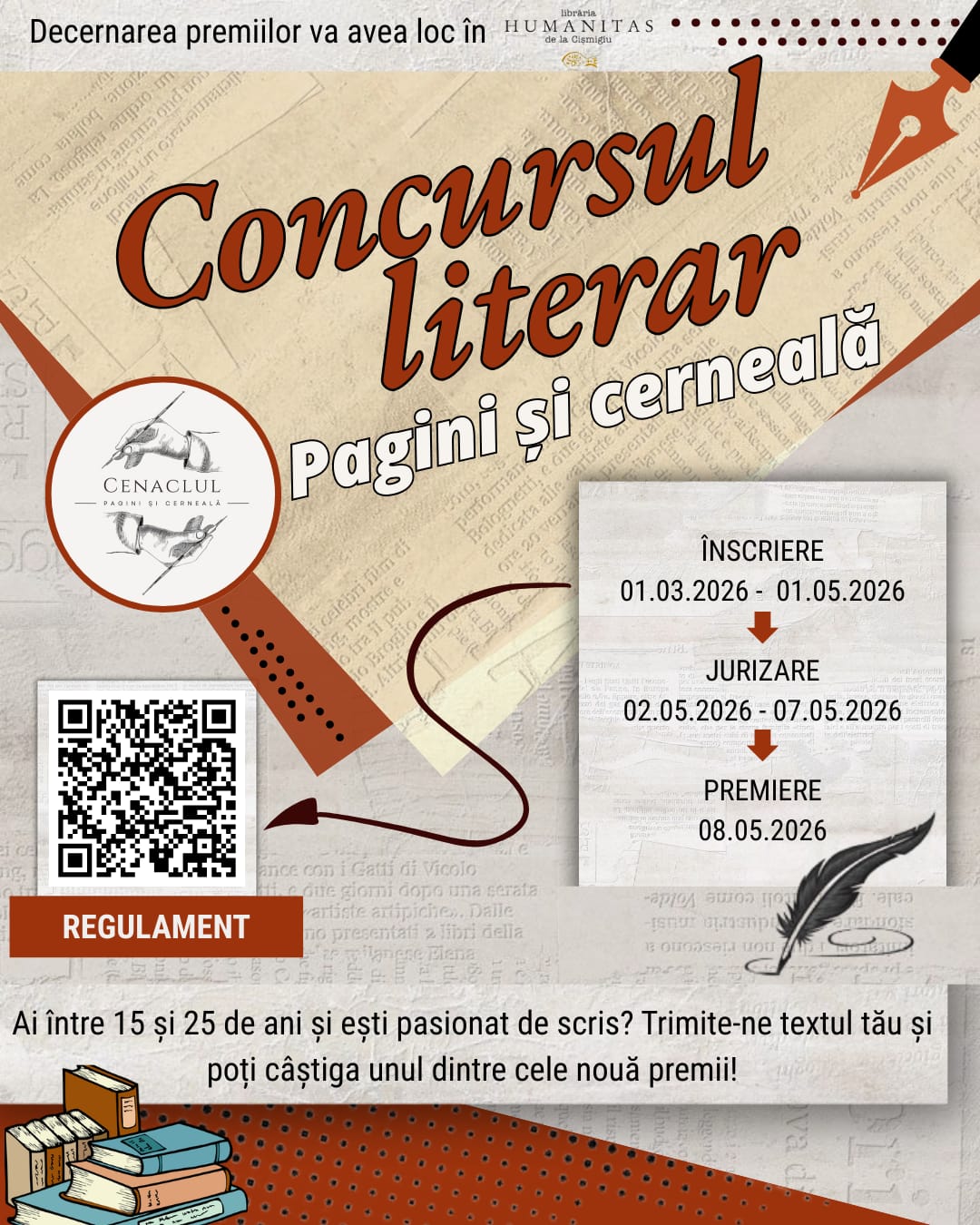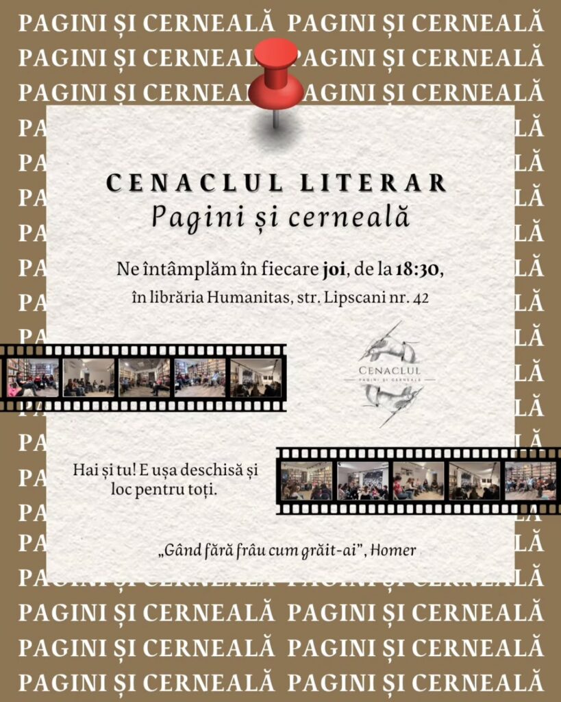 Salut! Mă numesc Robert, am șaptesprezece ani și de aproximativ șapte luni am onoarea și deopotrivă norocul să frecventez întrunirile cenaclul "Pagini și Cerneală".